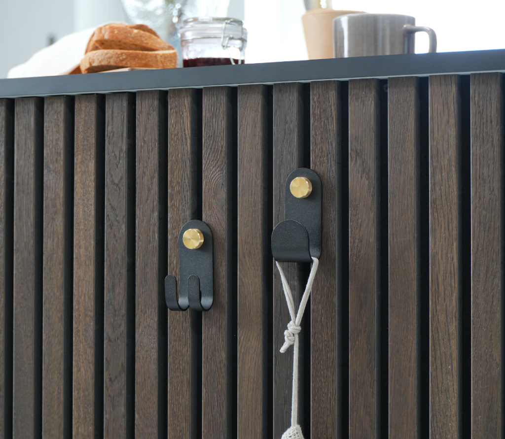 Die Norr Haken gibt’s als Einzel- oder Doppelausführung – in Schwarz mit Messing oder Beige mit Edelstahl.