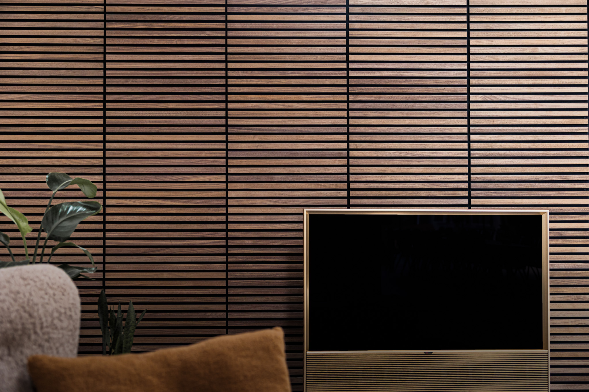 Schalldämpende Lamellenwand-Paneele, die entwickelt wurden, um Echo zu reduzieren und Deinem Raum ein stilvolles, angenehmes Ambiente zu verleihen.