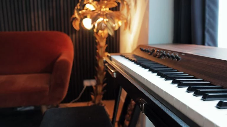 “Es ist wichtig für mich, einen tollen Übungsraum zu haben, weil er im Vergleich zu der Musik, die ich mache, inspirierend ist. Für mich ist klar, dass man auch eine tolle Umgebung braucht, um tolle Musik zu machen. Deshalb ist es für mich einfach wichtig, dass es gut aussieht und inspirierend ist.”