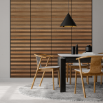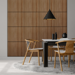 Das Akupanel kann für die Gestaltung schöner Lamellenwände und -decken verwendet werden, die dem Raum ein modernes Aussehen verleihen. Das Paneel ist schalldämpfend und beseitigt den Nachhall im Raum, was die Akustik im Raum bedeutend verbessert. Das Paneel kann horizontal und vertikal montiert werden.