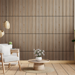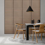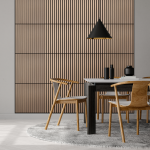 Das Akupanel kann für die Gestaltung schöner Lamellenwände und -decken verwendet werden, die dem Raum ein modernes Aussehen verleihen. Das Paneel ist schalldämpfend und beseitigt den Nachhall im Raum, was die Akustik im Raum bedeutend verbessert. Das Paneel kann horizontal und vertikal montiert werden.