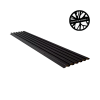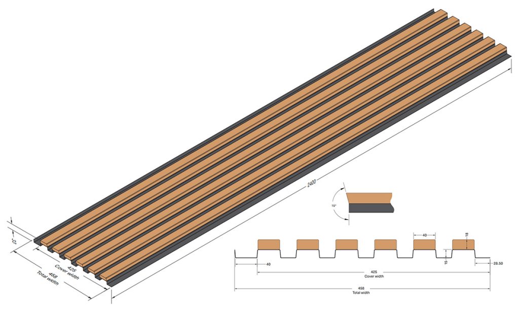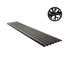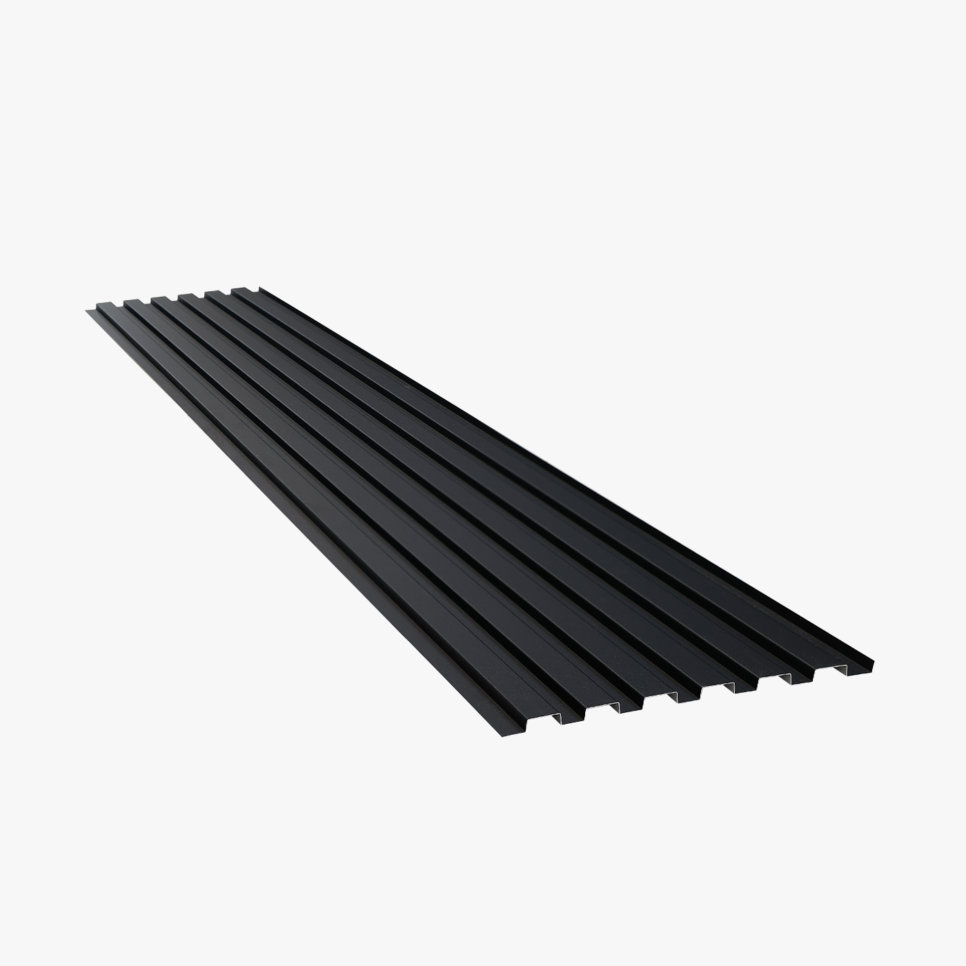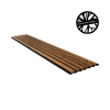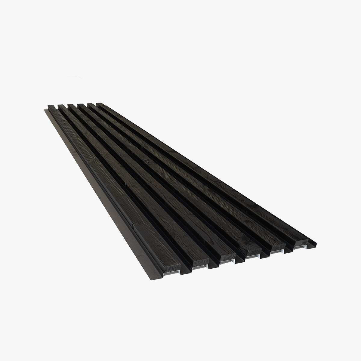 Thermisch behandelte Fichtenlatten sind mit einer pulverbeschichteten Aluminiumrückseite verbunden – eine Konstruktion, die in Skærbæk, Dänemark, entwickelt und hergestellt wurde. Das Ergebnis ist die Wärme und die Maserung von echtem Holz, gehalten von einer Struktur, die sich nicht verzieht, verdreht oder durchhängt.