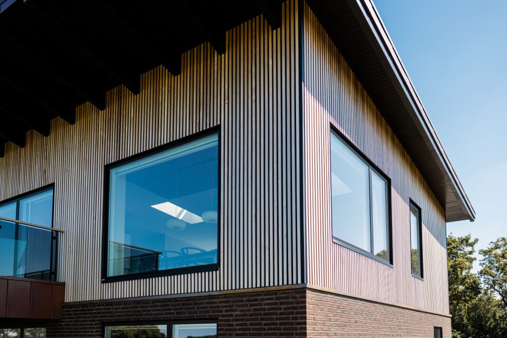 Aluwood-Paneele bestehen aus einer Kombination von thermisch behandeltem Holz und beschichtetem Aluminium. Die Materialien wurden aufgrund ihrer Langlebigkeit, Nachhaltigkeit und der Fähigkeit ausgewählt, einen schlanken, modernen Look zu bieten, der zu verschiedenen architektonischen Stilen passt. Diese Materialien machen Aluwood ideal für Anwendungen der Außenwandverkleidung.
