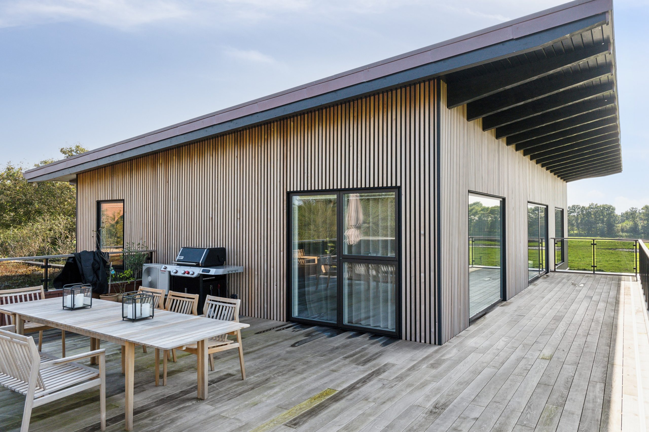 Hergestellt aus thermisch behandeltem Holz und beschichtetem Aluminium, ermöglichen unsere Paneele es Dir, die Außenbereiche in einem zeitlosen skandinavischen Design zu gestalten.