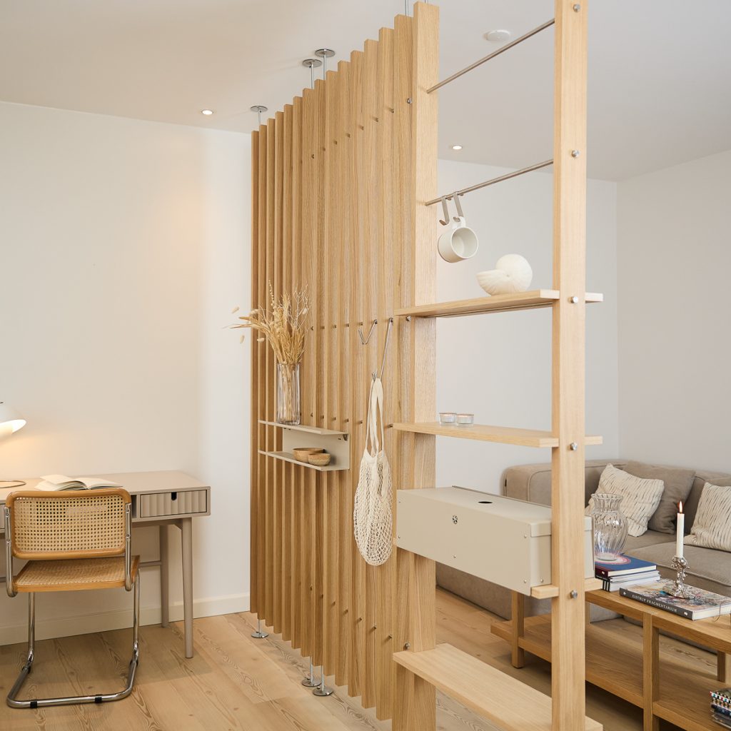 Das erleichtert es, einen Raum zu teilen, einen Hauch von Privatsphäre zu finden, wenn Du es brauchst, und dennoch das Gefühl zu haben, in einem ruhigen, kohärenten Raum zu sein — selbst wenn der Raum mehr als eine Aufgabe erfüllen muss.