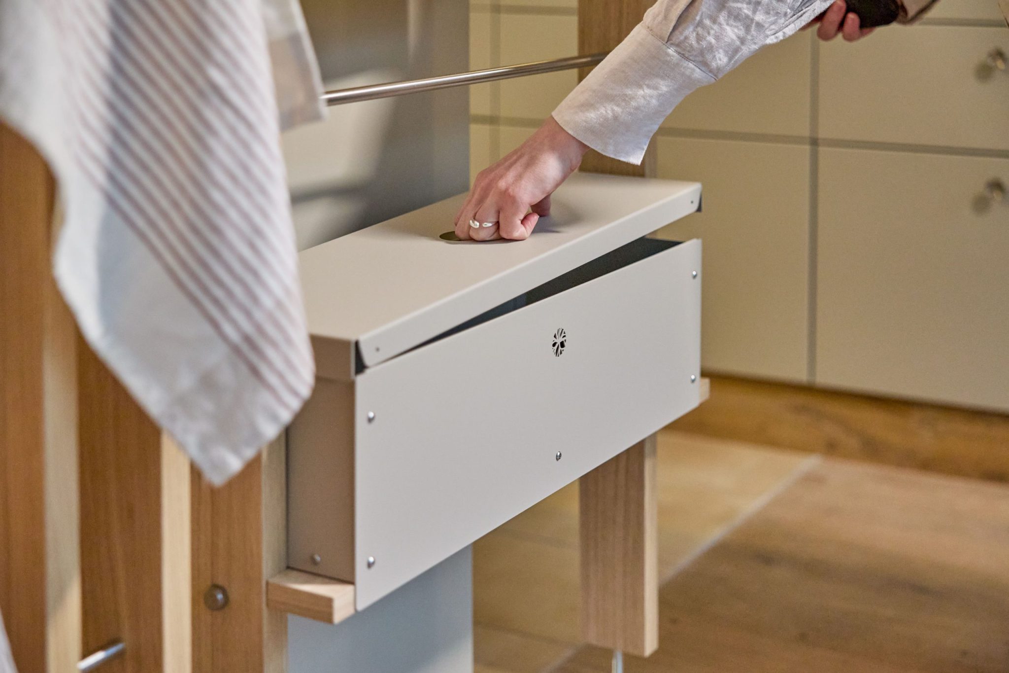 Die Nell Metallbox ist speziell für das Lova Wood Shelf und die Embrace | BM2 Raumtrennwand konzipiert.